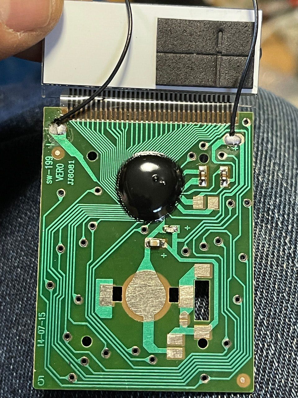 It has a pretty typical construction, but gratifyingly use a real solar cell. Many recent “solar” calculators contain fake solar cells, but that doesn’t seem to be the case with those I’ve found here in Japan. The internal construction is a typical chip on board design:
